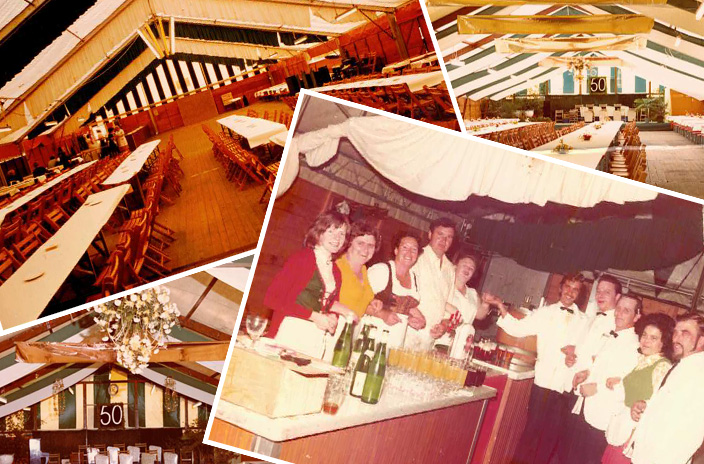 Unsere Geschichte nahm 1962 ihren Anfang. Aus einer Situation, die zunächst problematisch schien, sich jedoch als große Chance entpuppte. Die Kuckumer Schützenbruderschaft stand damals plötzlich ohne Zelt da, da der bisherige Zeltbauer abgesagt hatte. Karlheinz Oellers sen. ergriff die Gelegenheit, übernahm kurzerhand ein Zelt aus einem Nachbarort und legte damit den Grundstein für unser Familienunternehmen. Bis heute dürfen wir Vereine und Feste aus diesen ersten Jahren zu unseren treuen Kunden zählen, ein starkes Zeichen für gewachsene Partnerschaften und Vertrauen.